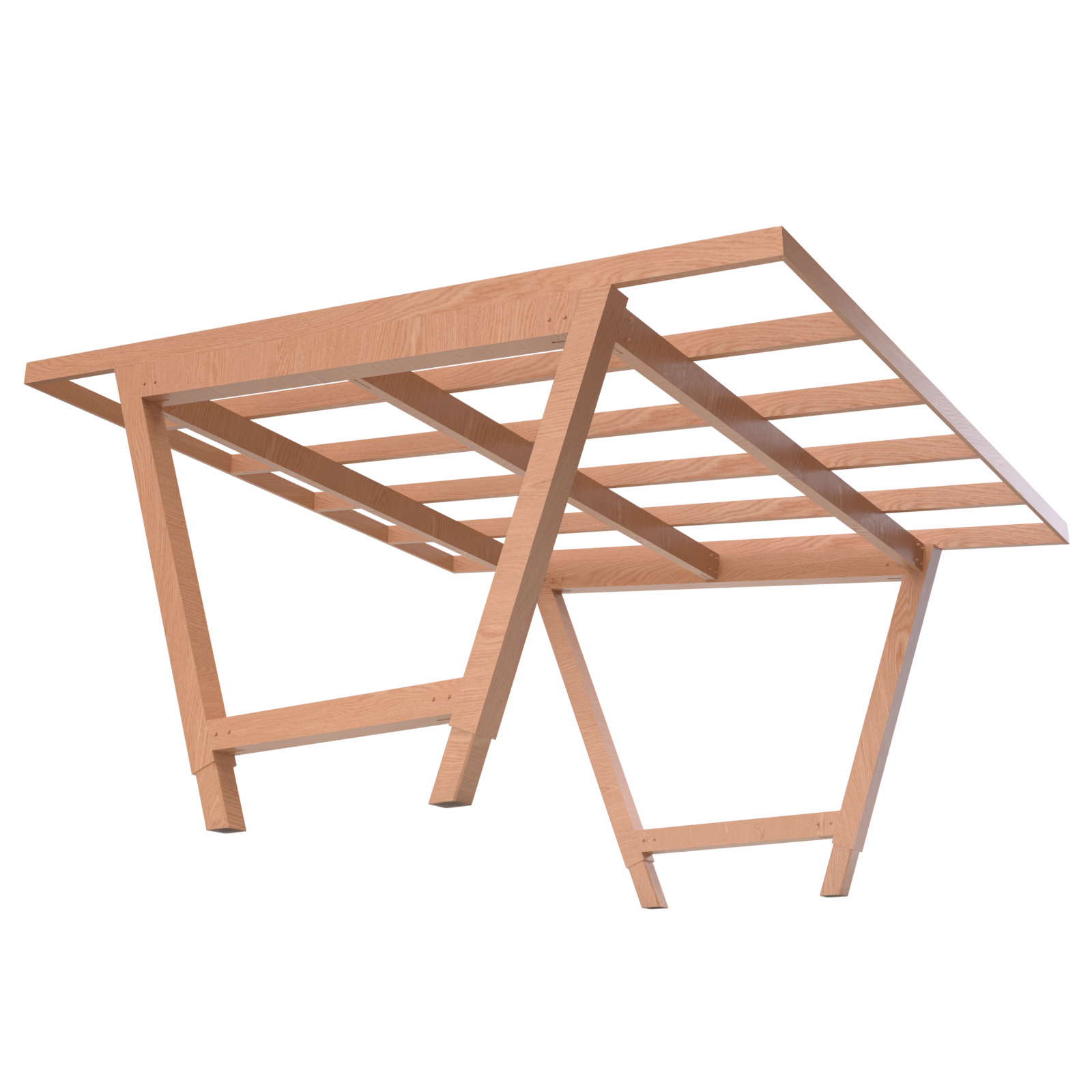 Deze uitvoering betreft uitsluitend de Douglas houten onderconstructie van de Solar Carport SC10. U ontvangt een complete draagconstructie van hoogwaardig Douglas hout, inclusief de benodigde inkepingen voor een eenvoudige montage.