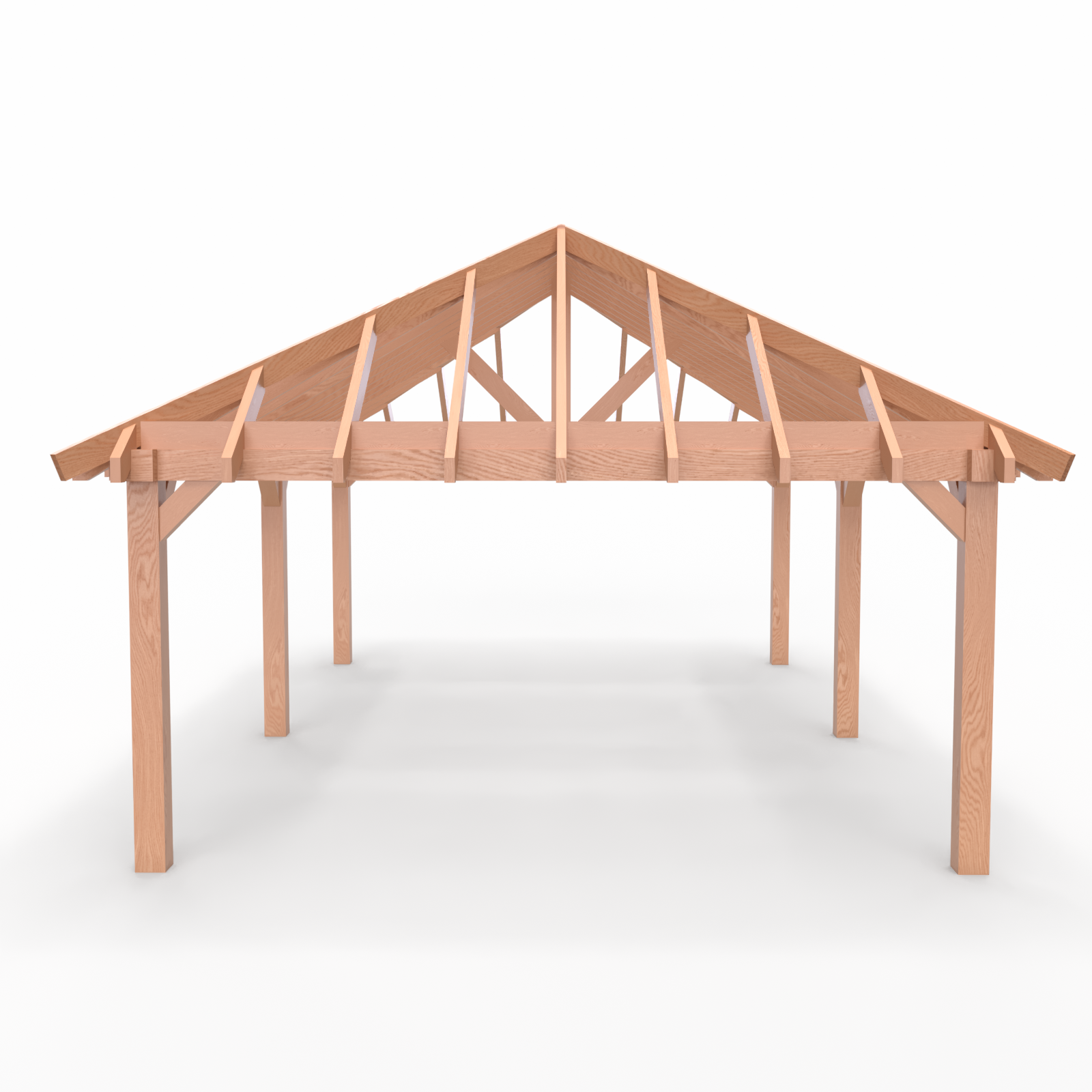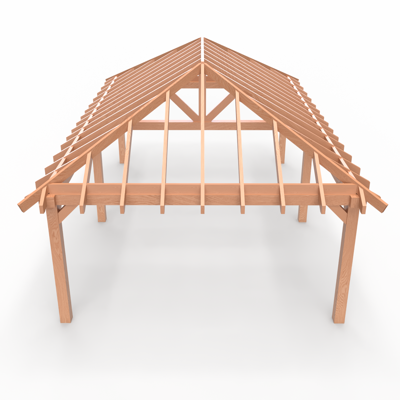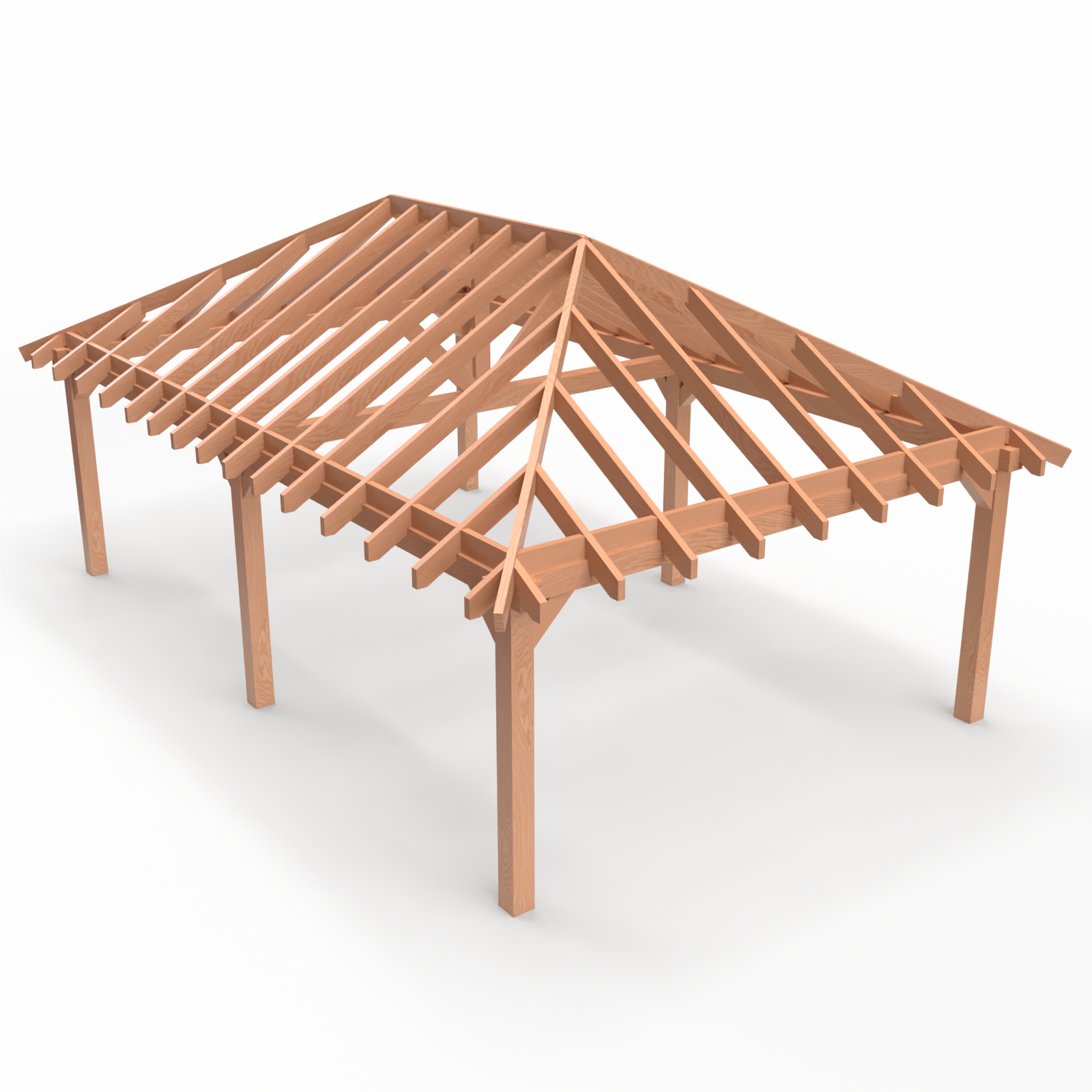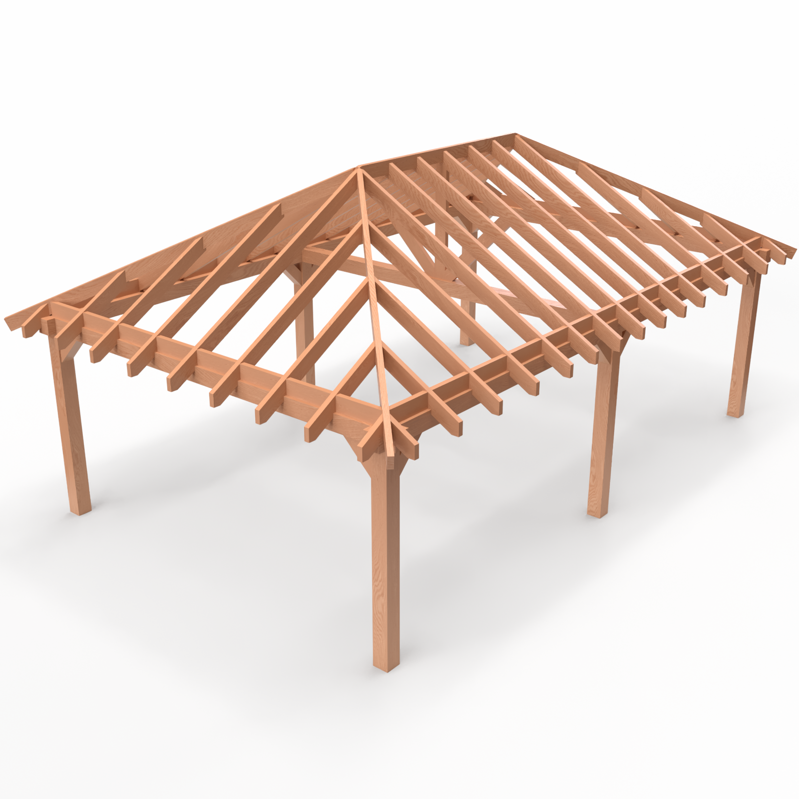 Het schilddak zorgt bovendien voor een optimale afvoer van regenwater rondom en geeft de overkapping een extra elegante en symmetrische uitstraling. Optioneel kunt u een zoldervloer laten toevoegen. Of vraag onze experts naar de opties en uitbreidingsmogelijkheden. Wij horen graag uw wensen, vraag uw maatwerkproject hier aan. Of neem contact met ons op en ga in gesprek met onze ontwerpers.