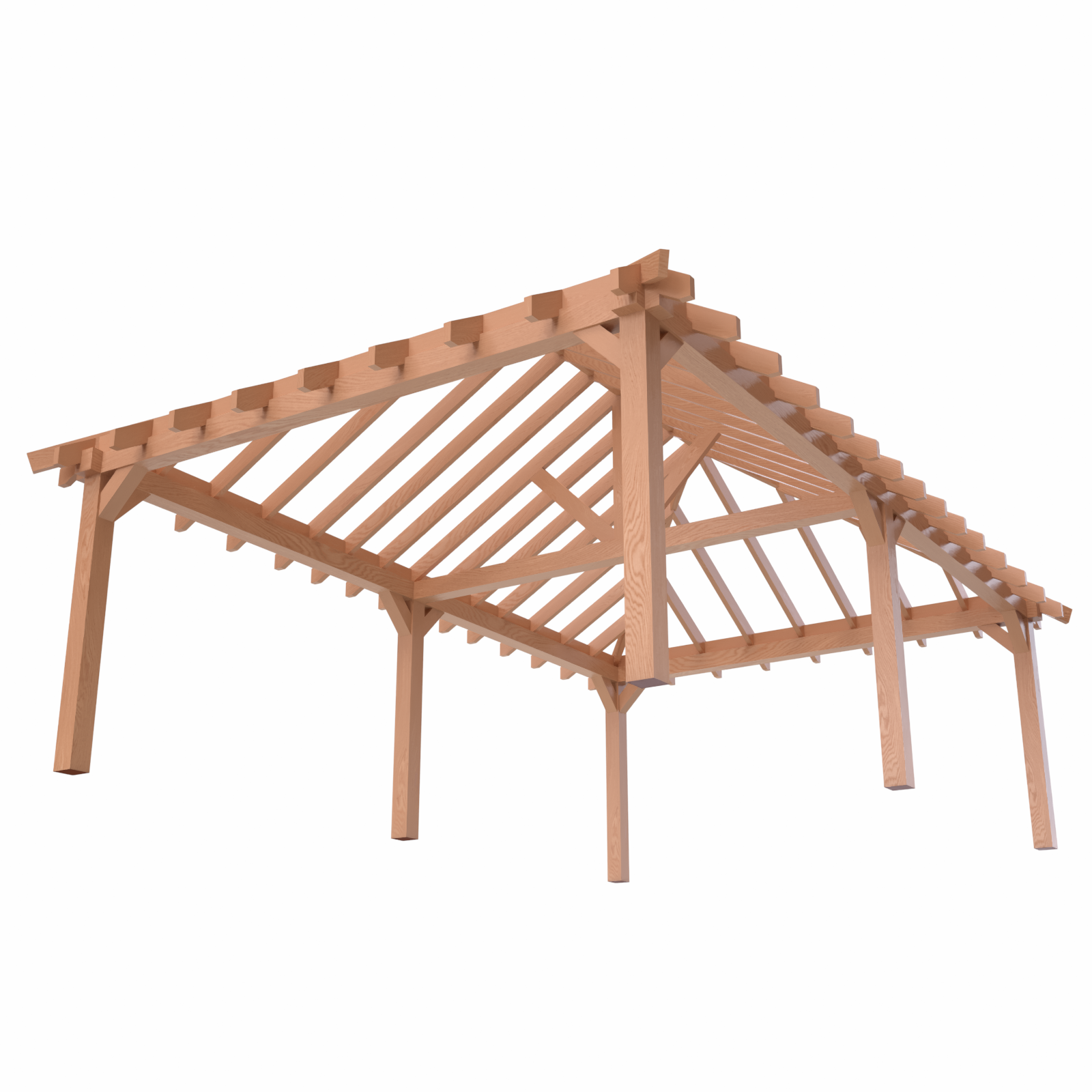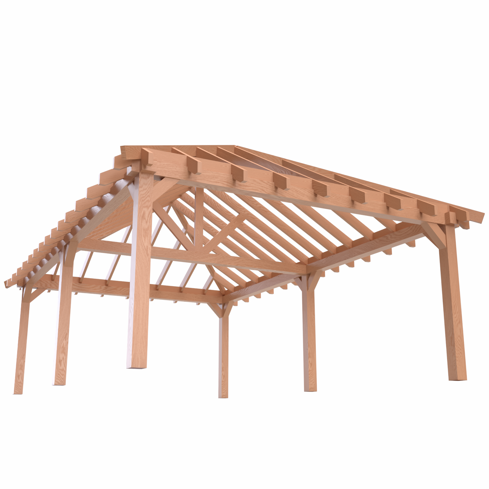 Dit product betreft uitsluitend de houten onderconstructie. U ontvangt de complete Douglas draagconstructie, inclusief alle benodigde inkepingen en bevestigingsmateriaal voor een eenvoudige montage. Dakbedekking en wanden zijn niet inbegrepen, zodat u zelf de vrijheid heeft om uw overkapping verder af te werken naar uw persoonlijke stijl en voorkeur.