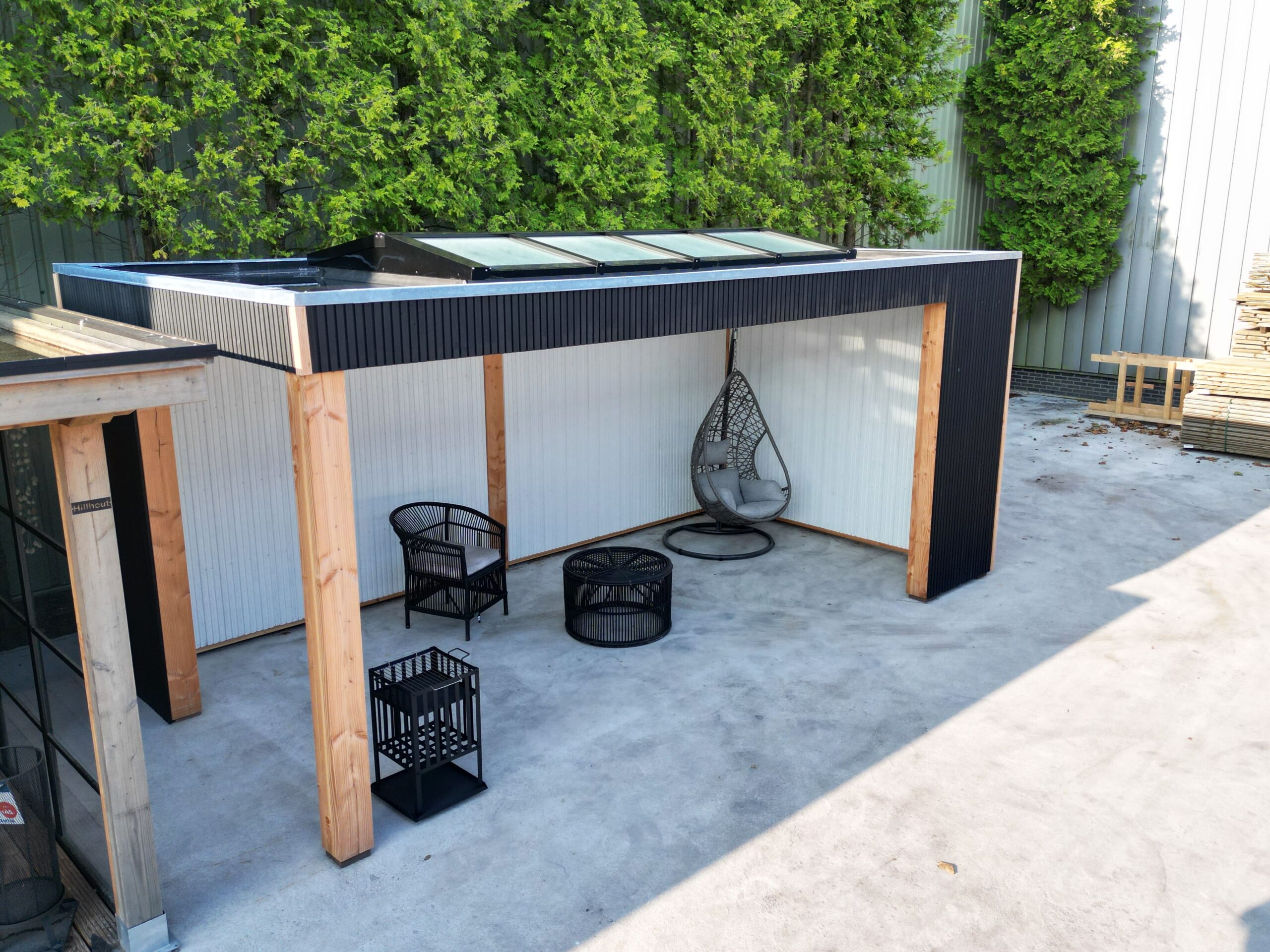 De onderbouw bestaat uit robuust geoptimaliseerde Douglas 180×180 mm balken en een strak, modern Rhombusprofiel. Dit eigentijdse ontwerp zorgt ervoor dat de terrasoverkapping naadloos integreert met elke buitenomgeving, waardoor het een veelzijdige en stijlvolle toevoeging aan uw tuin is.