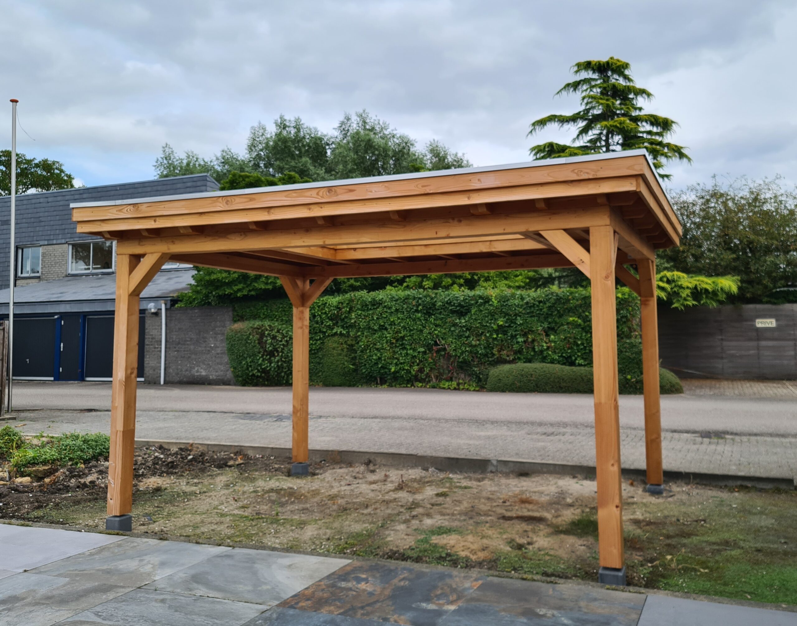 De constructie is opgebouwd uit hoogwaardige Douglas Duplo balken (Lamwood) die bekendstaan om hun natuurlijke duurzaamheid en warme uitstraling. De balken zijn allemaal geschaafd en voorzien van vellingkant voor een strakke afwerking. Dankzij de royale afmetingen van de staanders en dwarsliggers bent u verzekerd van een stevige basis: