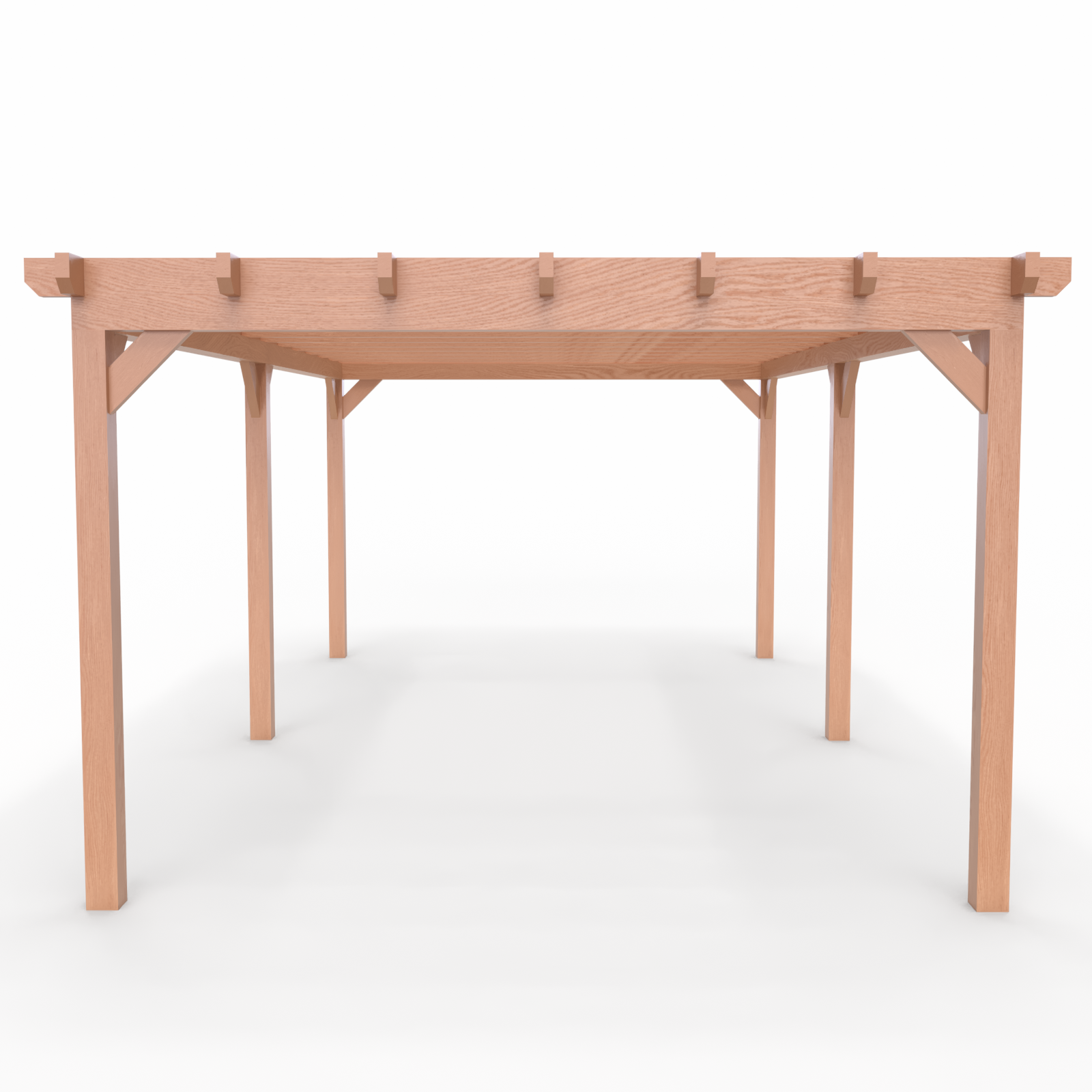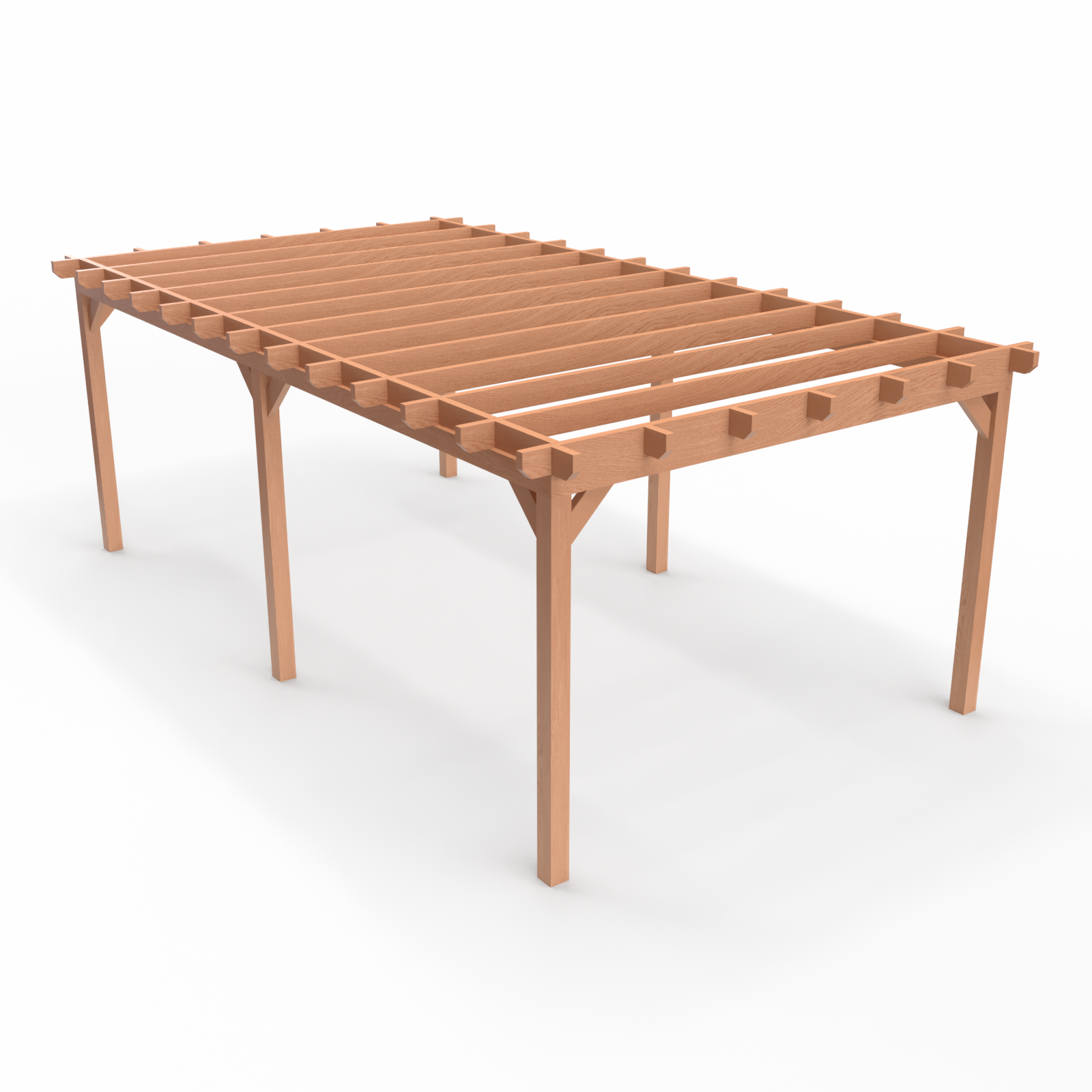 Let op: dit pakket bevat alleen de Douglas houten onderconstructie van de terrasoverkapping. U ontvangt dus de complete draagconstructie in Douglas hout, inclusief alle benodigde inkepingen en bevestigingsmateriaal voor een eenvoudige montage. Dakbeschot, boeidelen of wanden zijn niet inbegrepen, zodat u de vrijheid heeft om deze geheel naar wens toe te voegen.