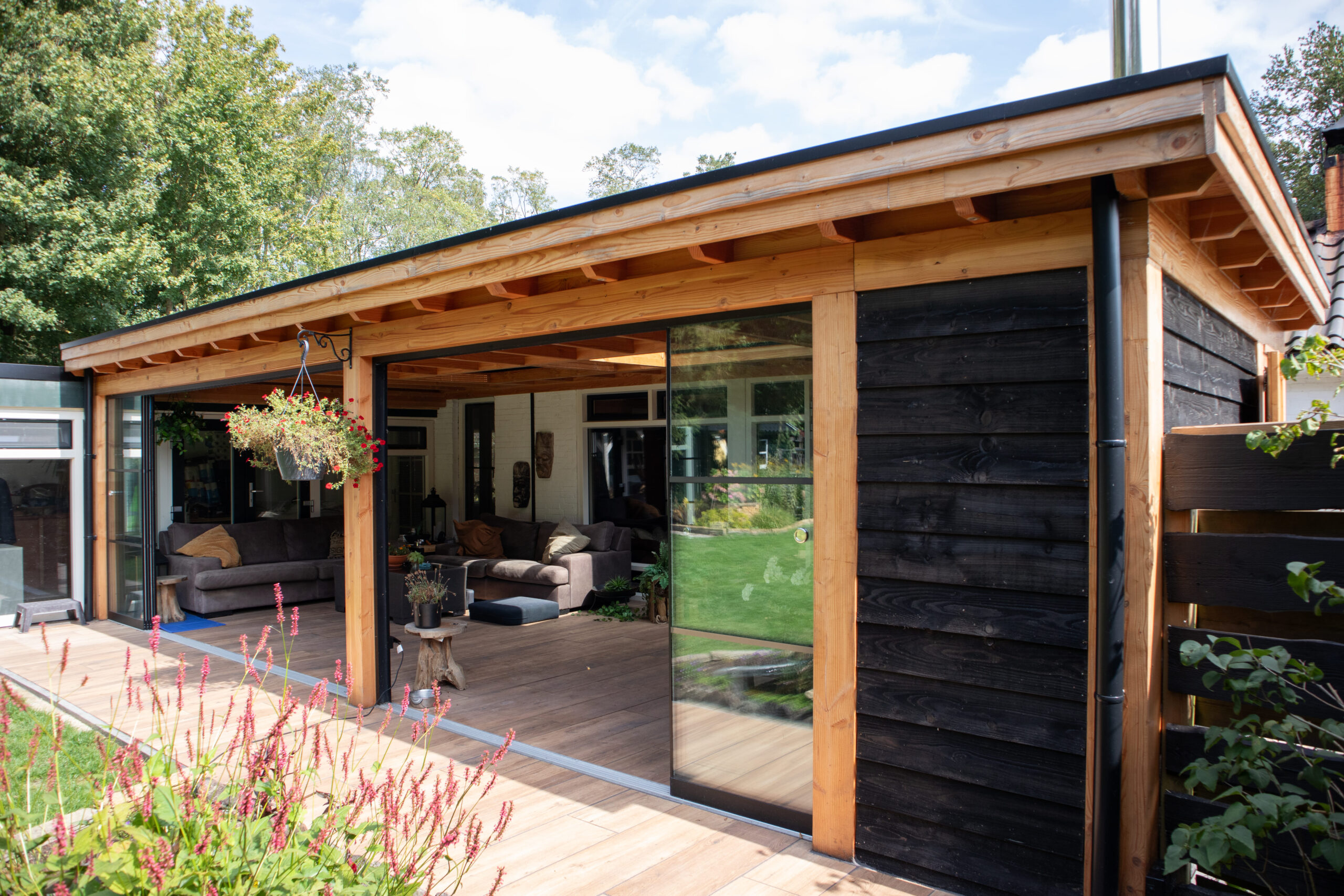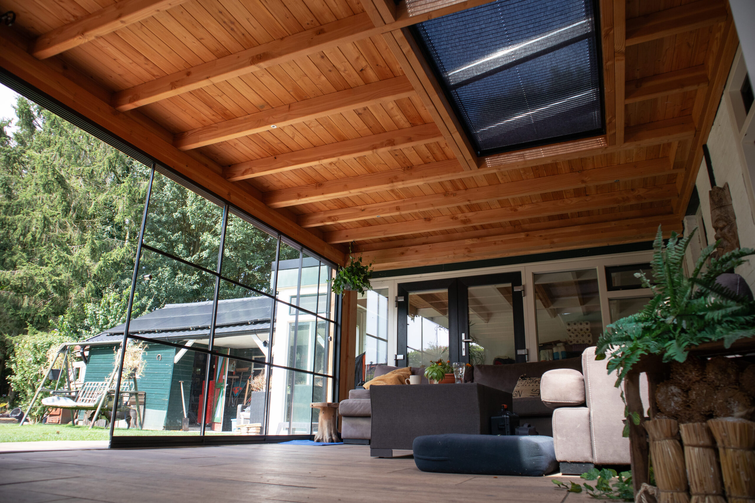 Met zijn massieve afmetingen en hoogwaardige Douglas houtkwaliteit vormt de XXL onderconstructie een betrouwbare basis voor een overkapping die generaties meegaat. Wilt u later meer comfort en beschutting? Dan is de constructie eenvoudig uit te breiden met een lichtstraat, houten of glazen zijwanden of glazen schuifdeuren. Zo maakt u van uw overkapping een plek die perfect aansluit bij uw woonwensen.