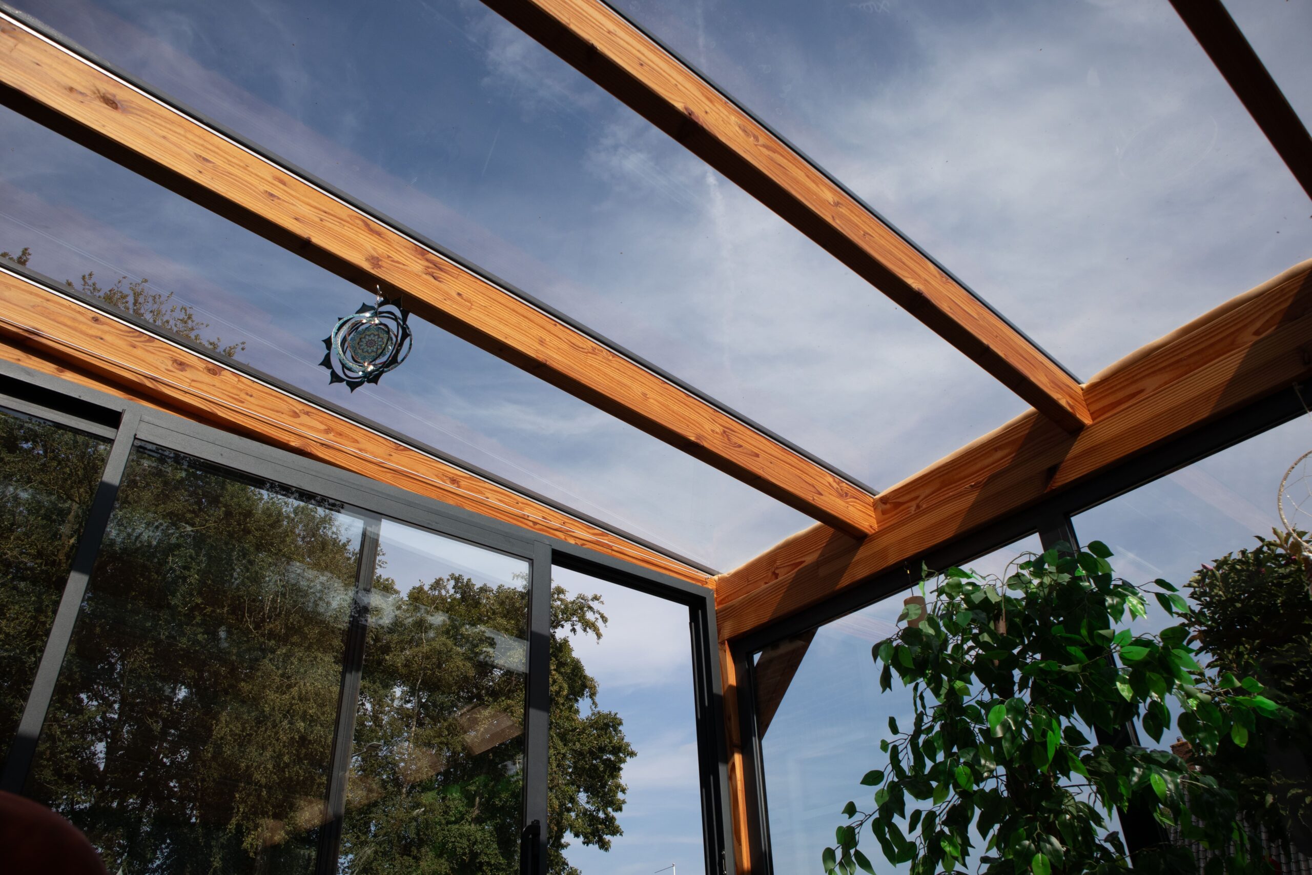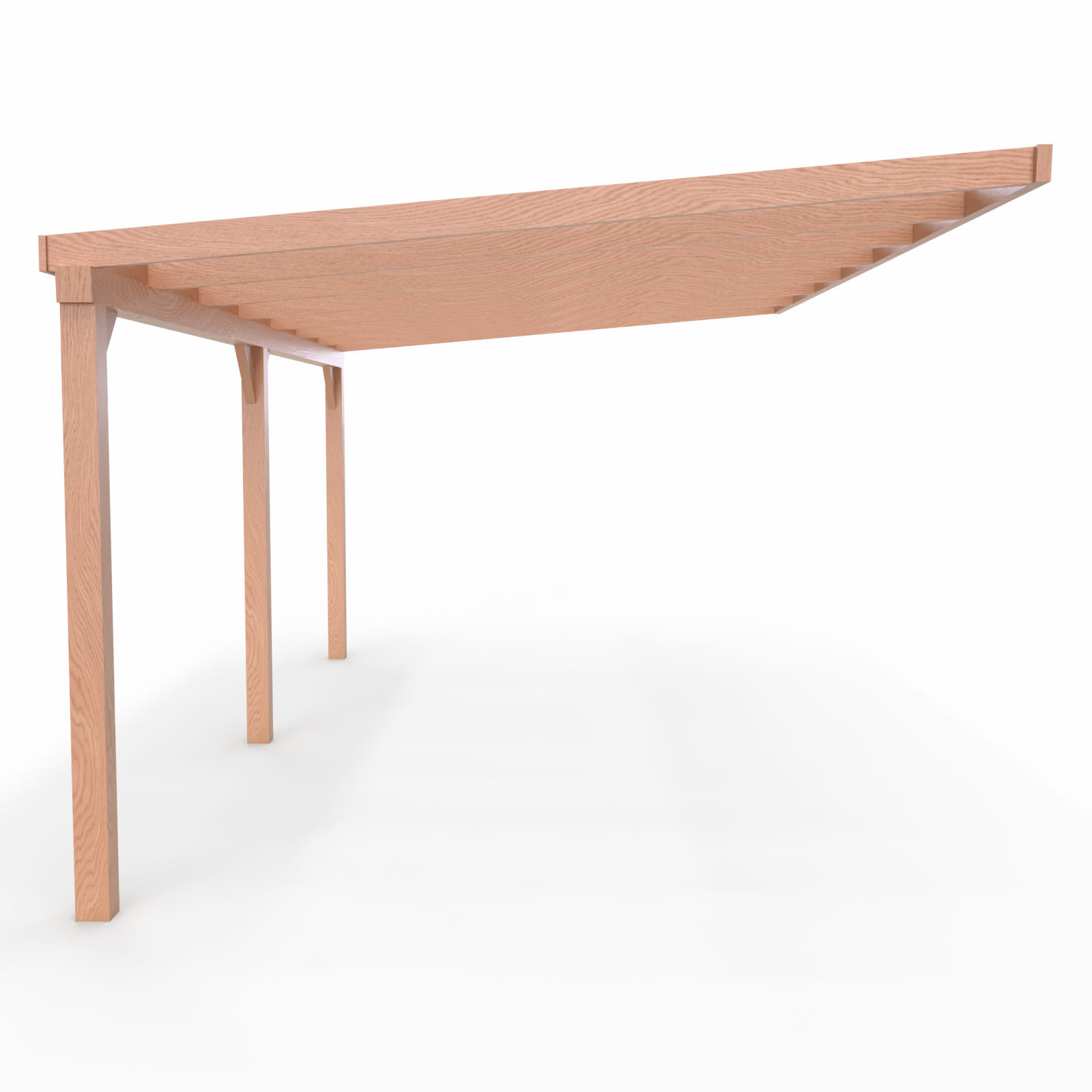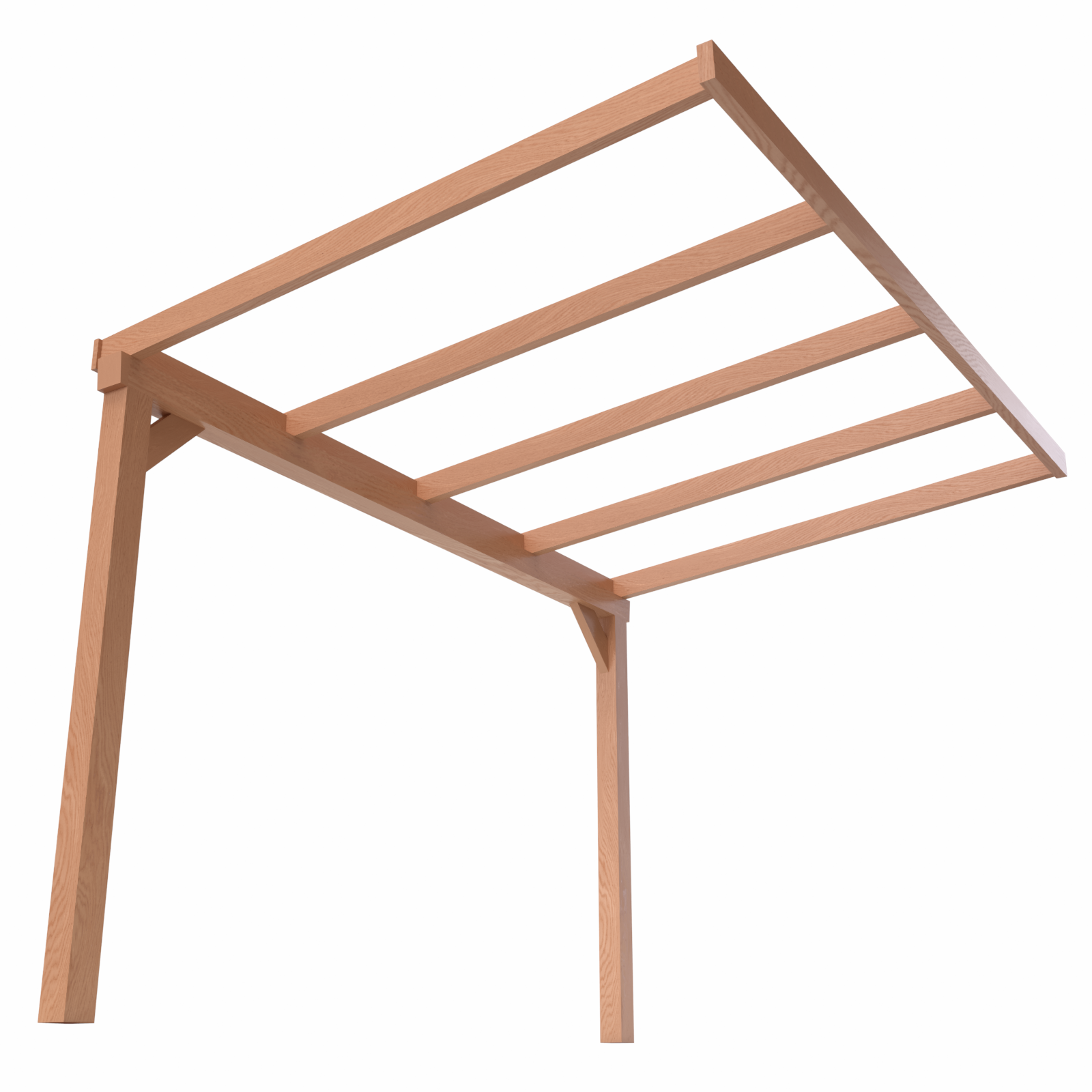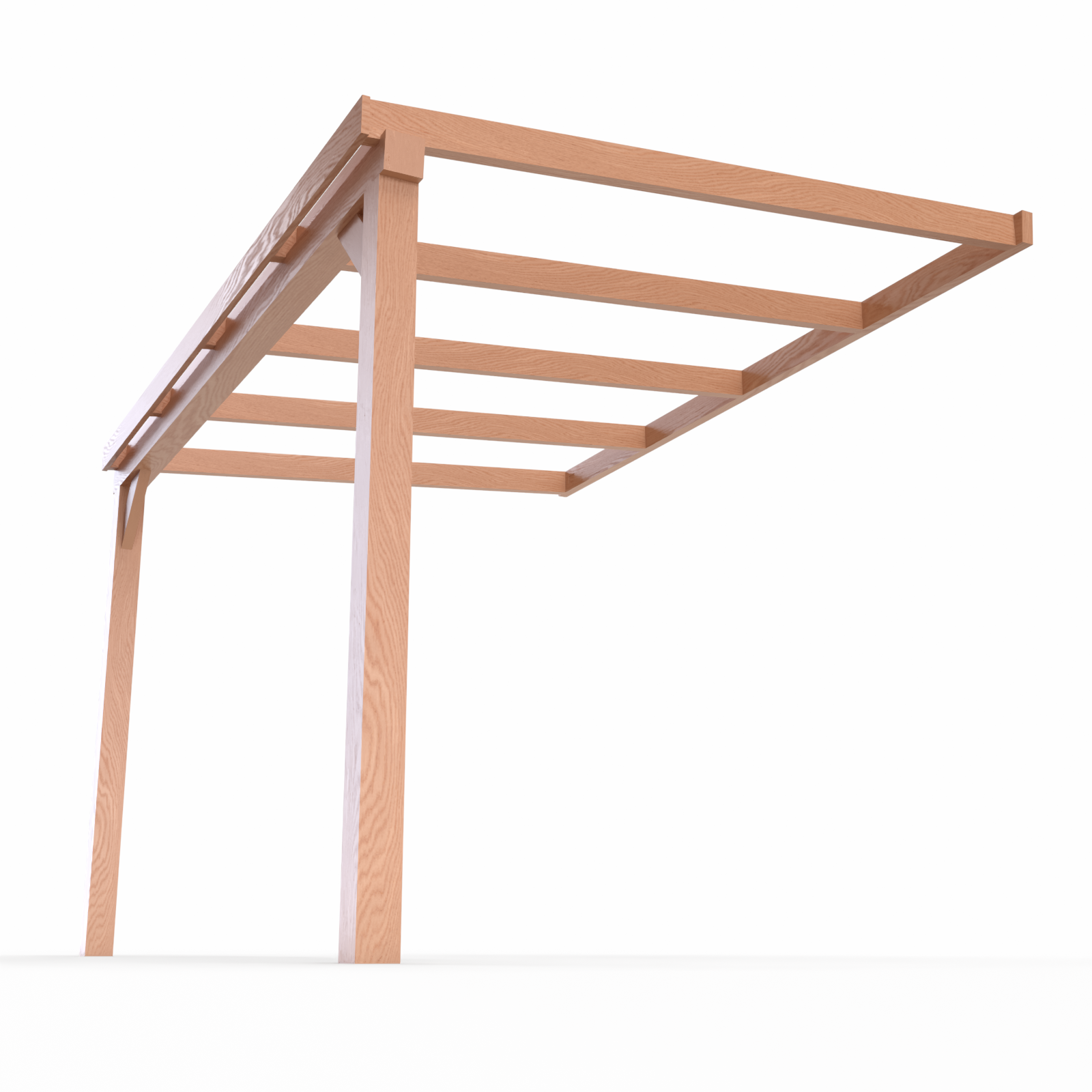 De constructie is opgebouwd uit geoptimaliseerd Douglas Duplo balken (Lamwood). Dit hout staat bekend om zijn natuurlijke duurzaamheid, warme uitstraling en lange levensduur. Dankzij de royale balkmaten van 140×140 mm voor de staanders en dwarsliggers staat uw veranda stevig en betrouwbaar tegen de gevel. De balken zijn allemaal geschaafd en voorzien van vellingkant voor een strakke afwerking.