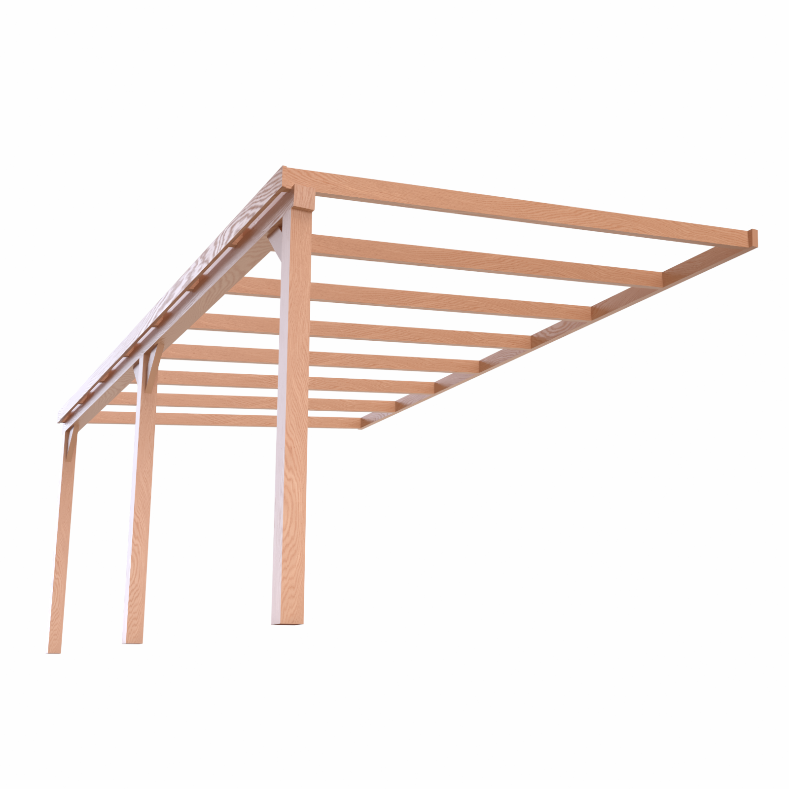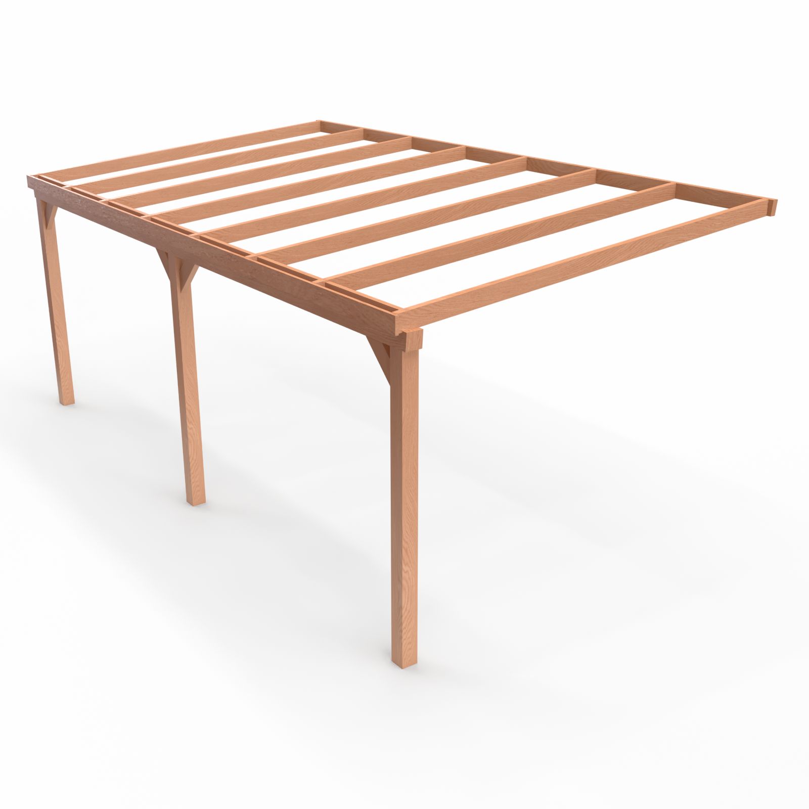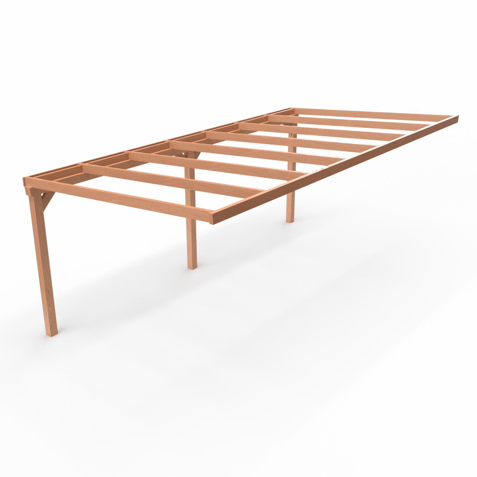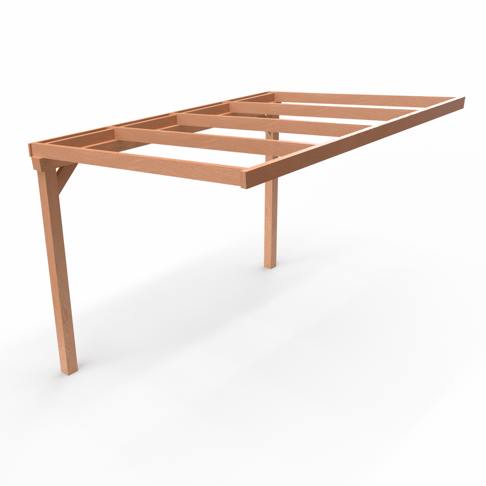 Belangrijk: dit product betreft uitsluitend de houten onderconstructie. Dat betekent dat u de complete constructie van Douglas hout ontvangt, inclusief alle benodigde inkepingen en bevestigingsmateriaal voor een snelle en eenvoudige montage. Dakbedekking, zijwanden of afwerking zijn niet inbegrepen, zodat u de veranda zelf volledig naar wens kunt samenstellen.