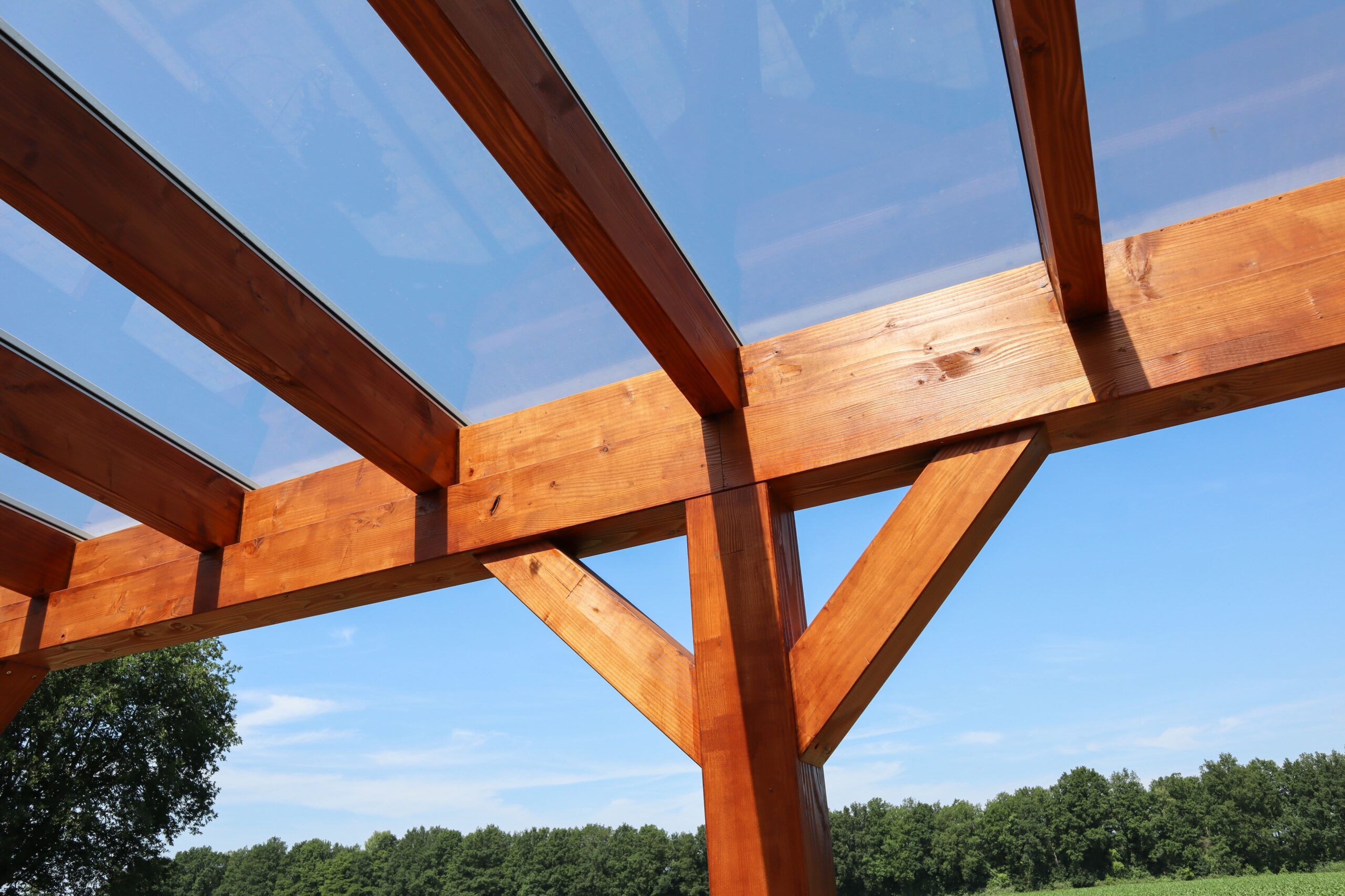 Alle onderdelen zijn voorzien van de juiste inkepingen voor een eenvoudige montage. Met staanders en dwarsbalken van 180×180 mm en gordingen van 80×200 mm kiest u voor een extreem stabiele en robuuste constructie die zowel een traditioneel dak als een solar verandadak moeiteloos kan dragen.
