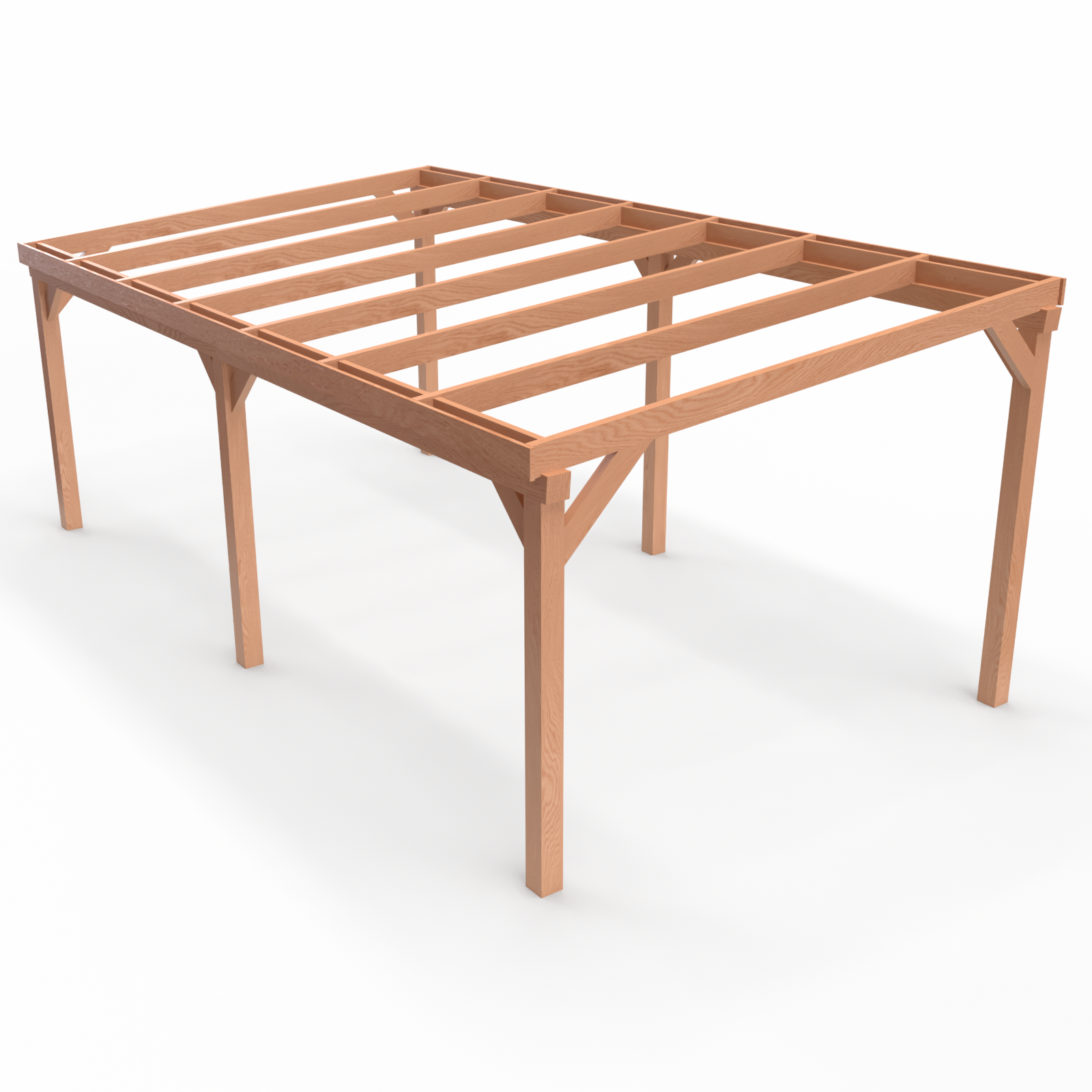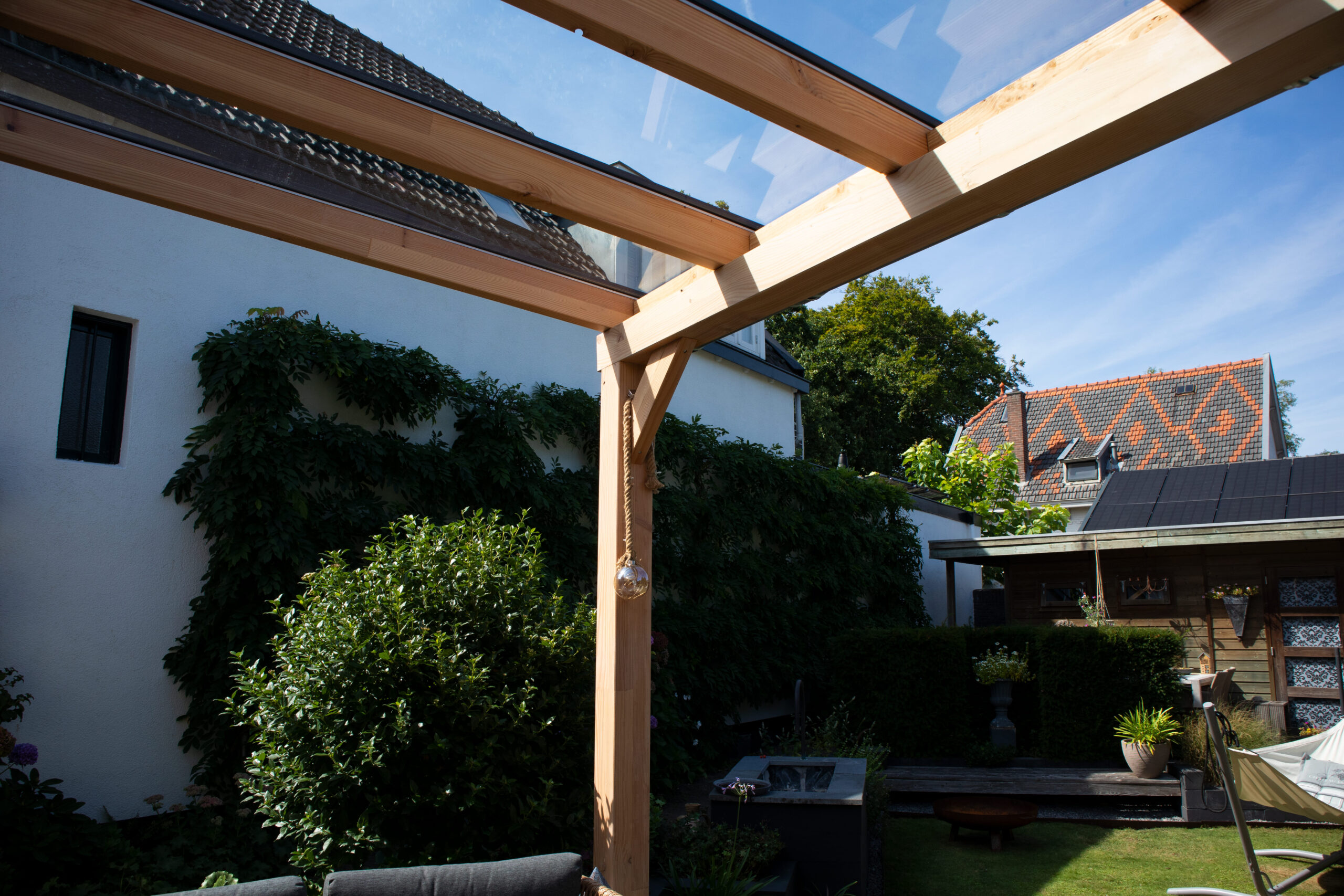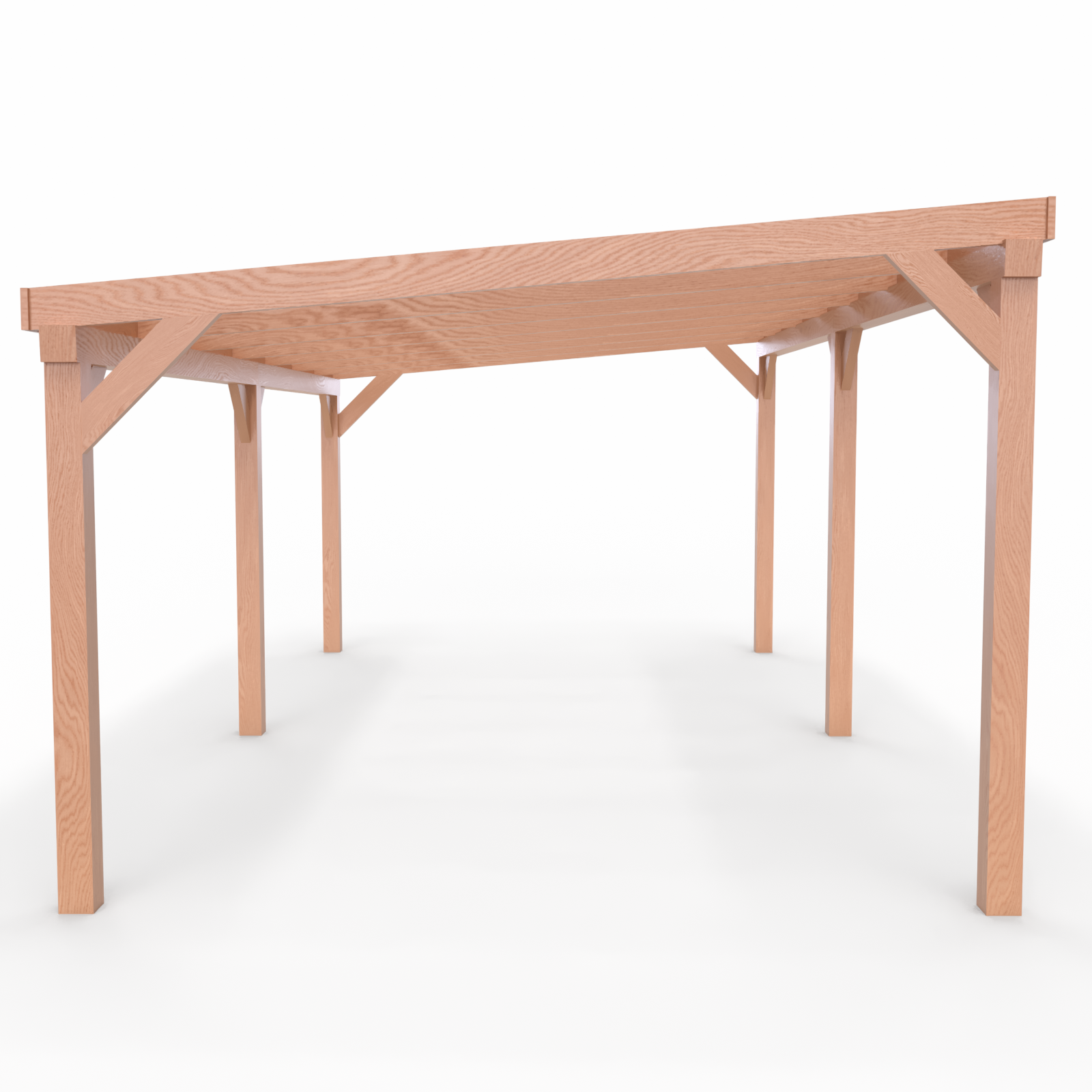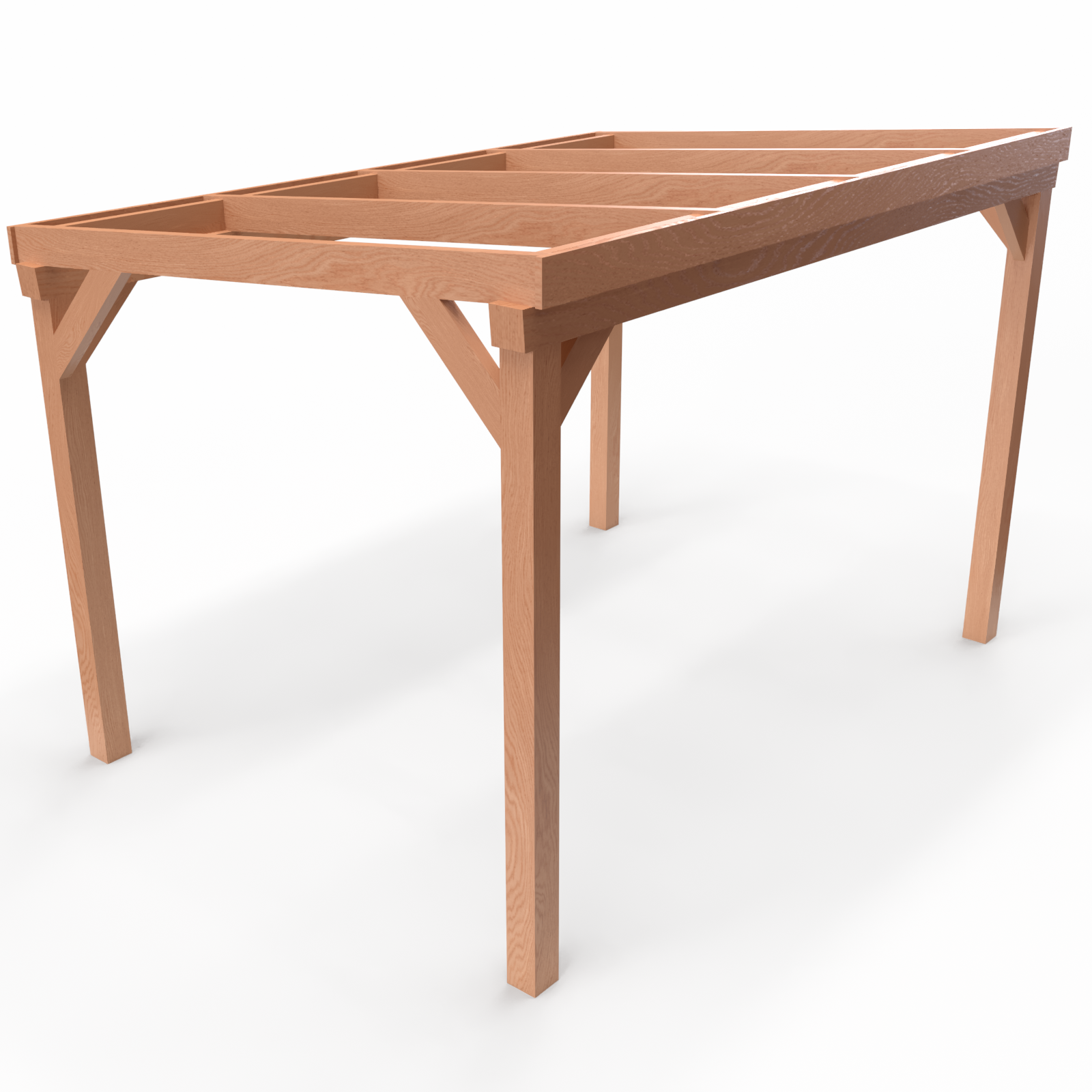 Deze vrijstaande Douglas veranda-constructie is ontworpen voor langdurig gebruik. Het hout is duurzaam, weerbestendig en heeft een warme, natuurlijke uitstraling die in elke tuin tot zijn recht komt. De balken zijn allemaal geschaafd en voorzien van vellingkant voor een strakke afwerking.