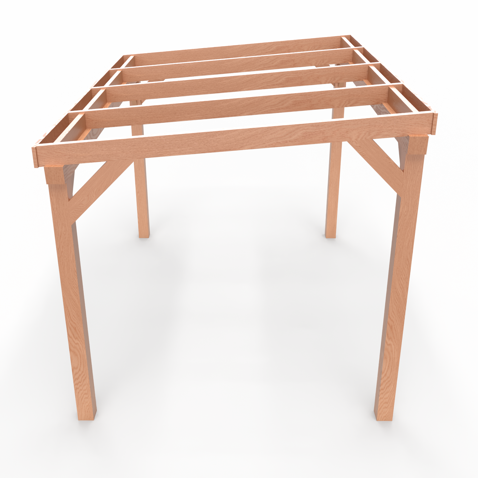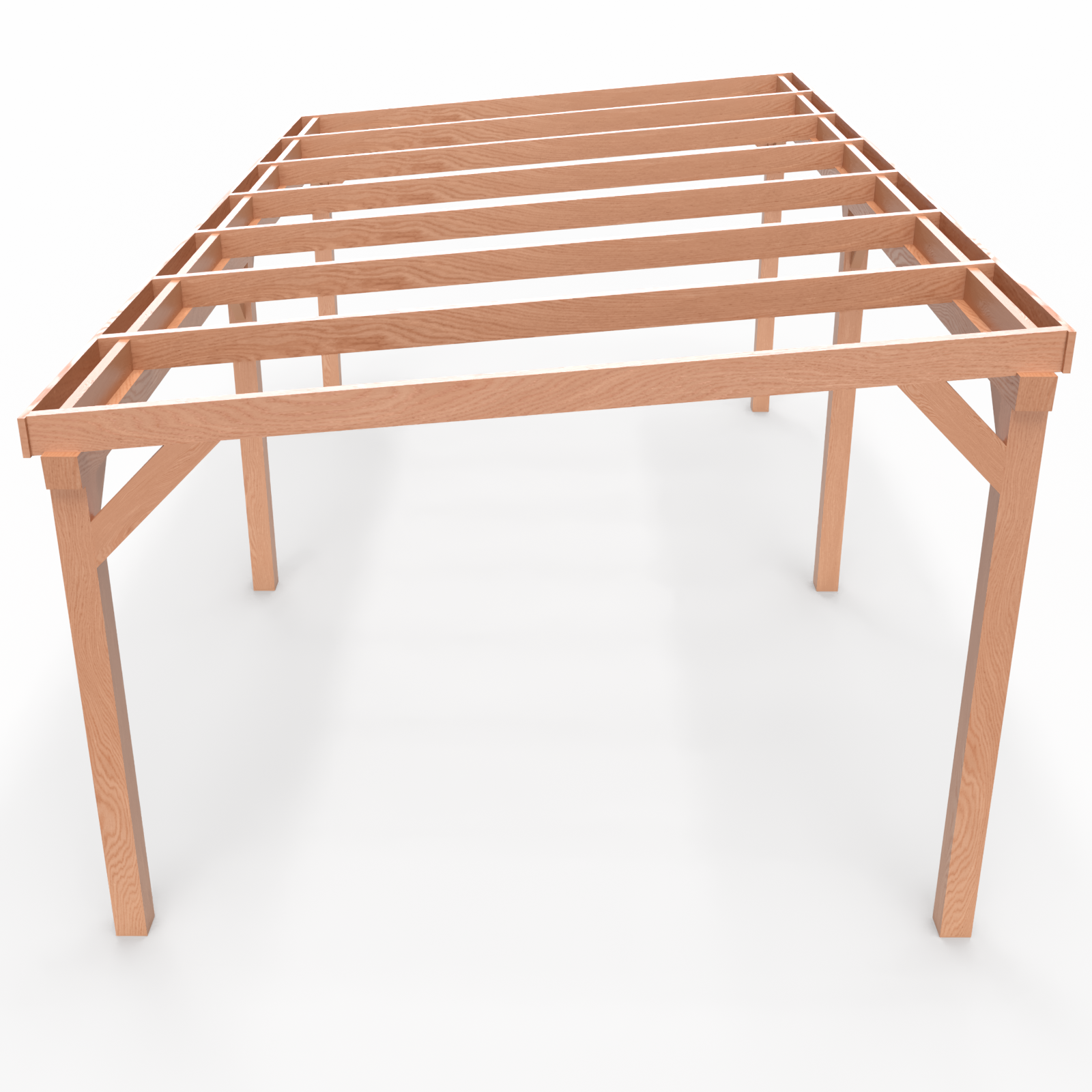 De vrijstaande onderconstructie veranda wordt geleverd met geoptimaliseerde Douglas Duplo balken (Lamwood), compleet met alle benodigde inkepingen voor een eenvoudige montage. De royale staanders en dwarsbalken van 140×140 mm garanderen maximale stevigheid en een stoere, massieve uitstraling. De balken zijn allemaal geschaafd en voorzien van vellingkant voor een strakke afwerking.